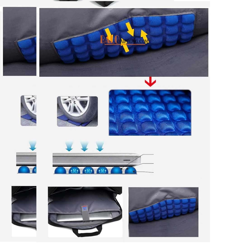 Phần đệm khí (air bubble shockproof compartment) với nhiều lớp vải và không gian đệm khí giúp giảm lực va đập từ bên ngoài vào laptop.