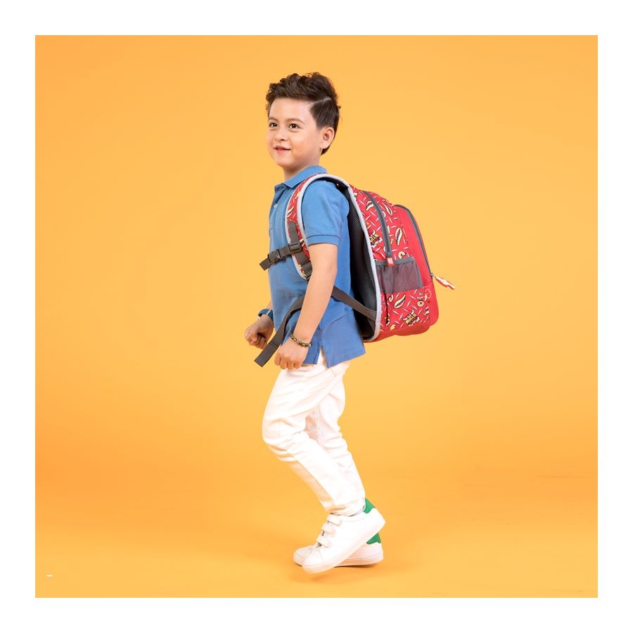 Mẫu ba lô với hình ảnh siêu xe trên đường đua rực lửa, cùng tông màu đỏ mạnh mẽ - cực kỳ thích hợp cho các bé có niềm đam mê với xe.