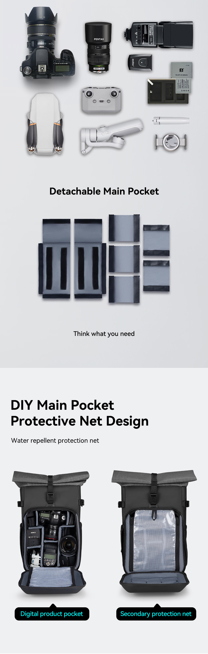 - Có thể tùy chỉnh tốt để đi kết hợp để máy ảnh,đồ chơi công nghệ hay đi làm hàng ngày