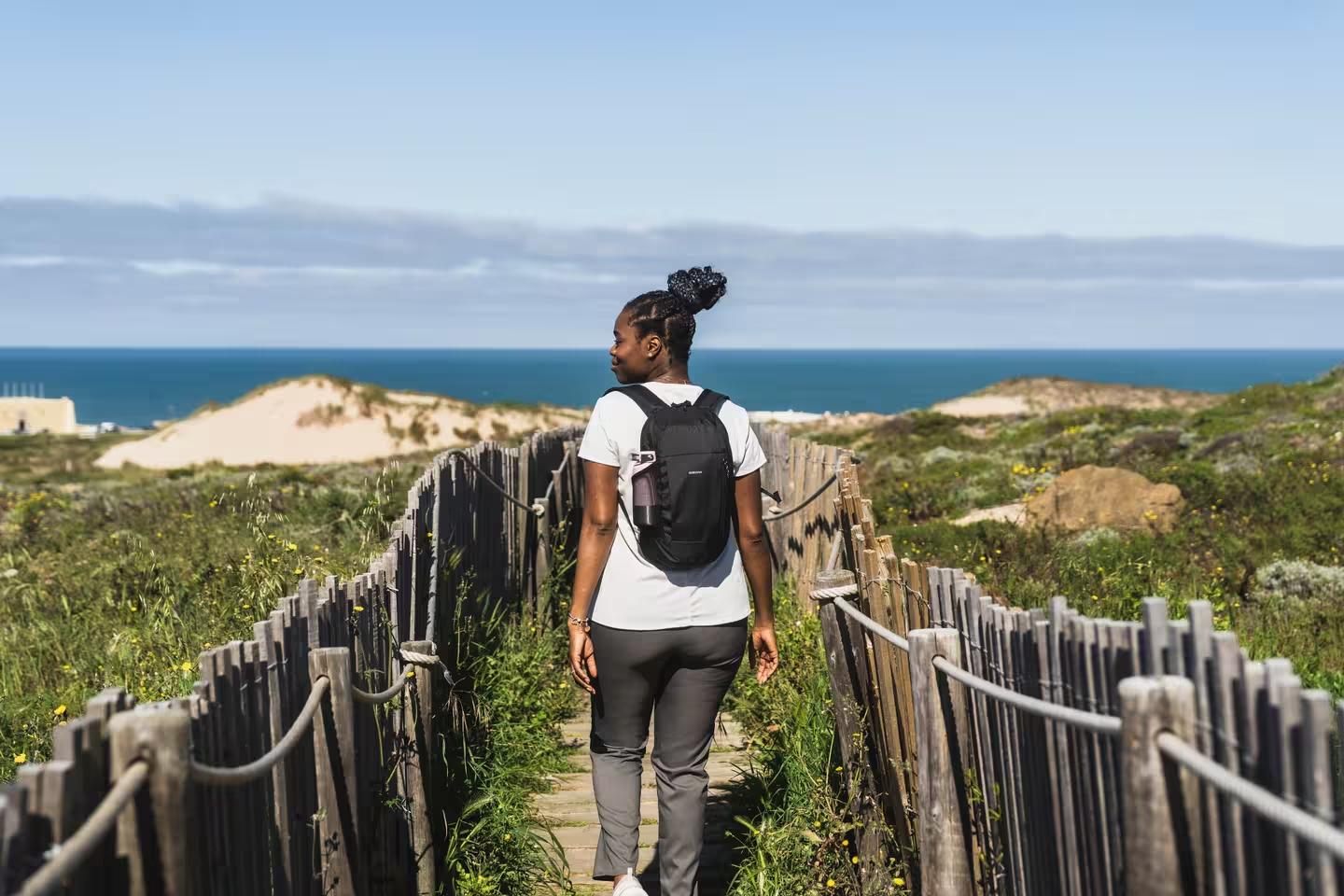 Balo thoải mái cho các chuyến đi ngắn, không thường xuyên: mặt lưng nỉ và quai đeo thoáng khí, có thể điều chỉnh cùng móc ngón cái tiện dụng.