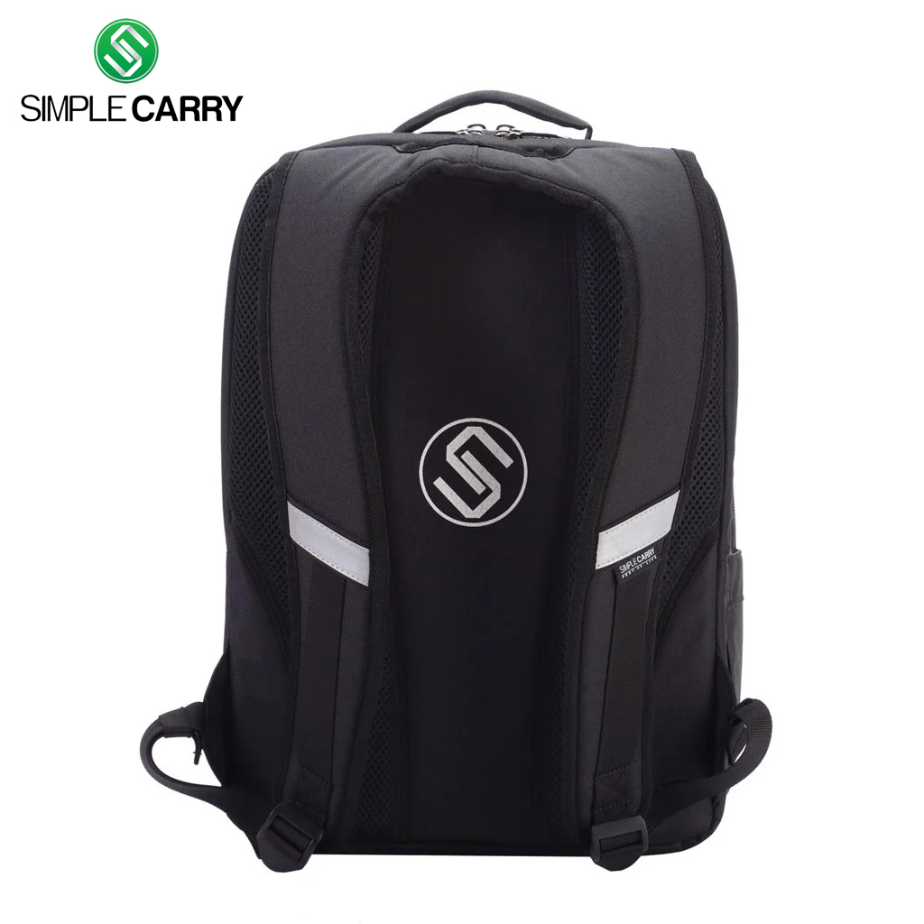 - Thân sau: Phần lưng có lớp lưới Air Mesh thoát hơi nhanh, in logo tròn của SimpleCarry
