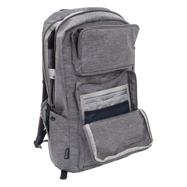 Ngăn chính phía trong rộng rãi, có ngăn đựng laptop riêng biệt với lớp mút PE chống sốc, 2 túi hông đựng bình nước.