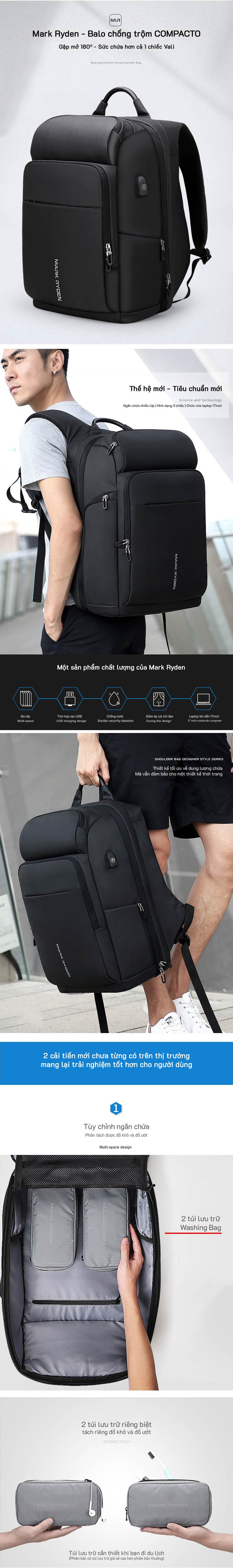 Balo Du Lịch Cỡ Lớn Mark Ryden Compacto MR7080D | Đi Làm – Đi Học – Công Tác – Dã Ngoại