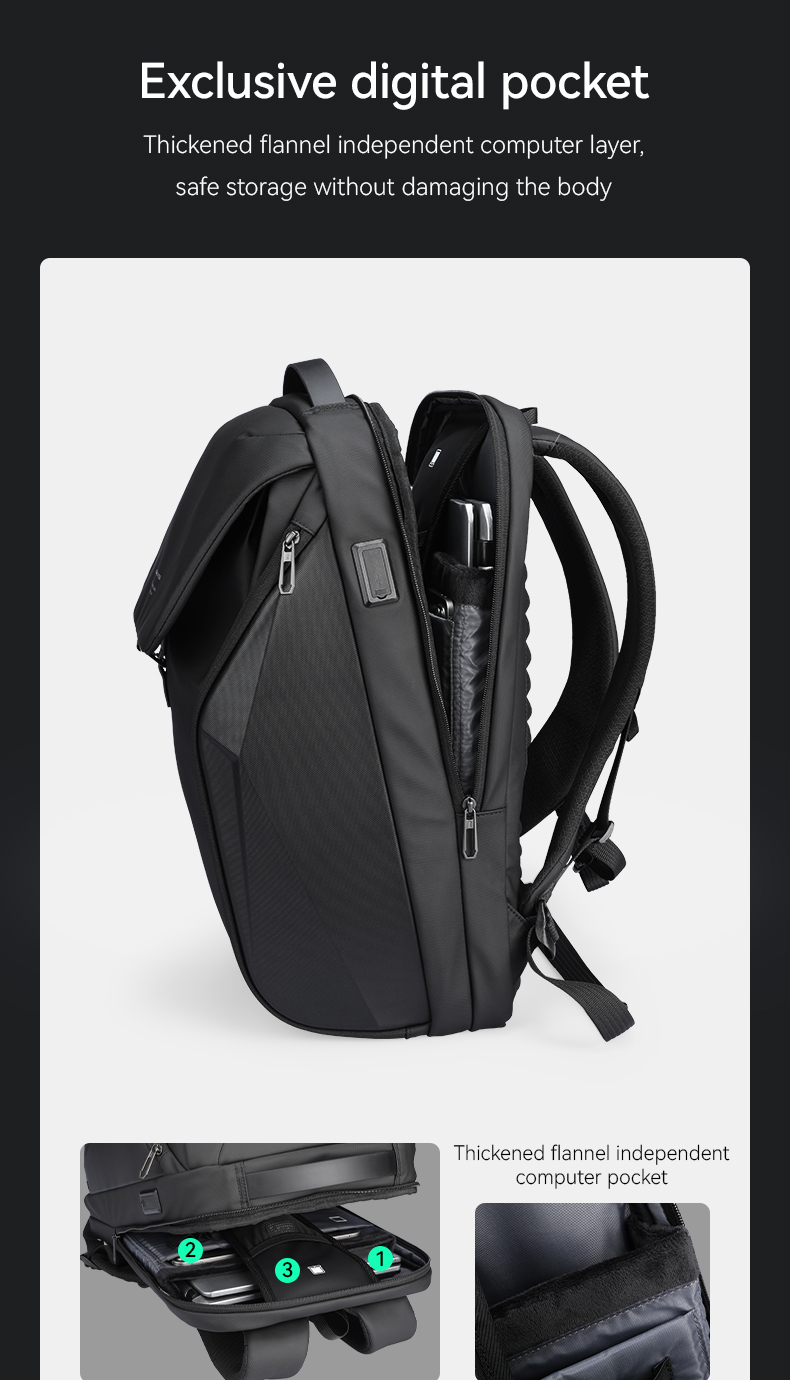 Ngăn laptop độc lập, lót flannel dày, êm