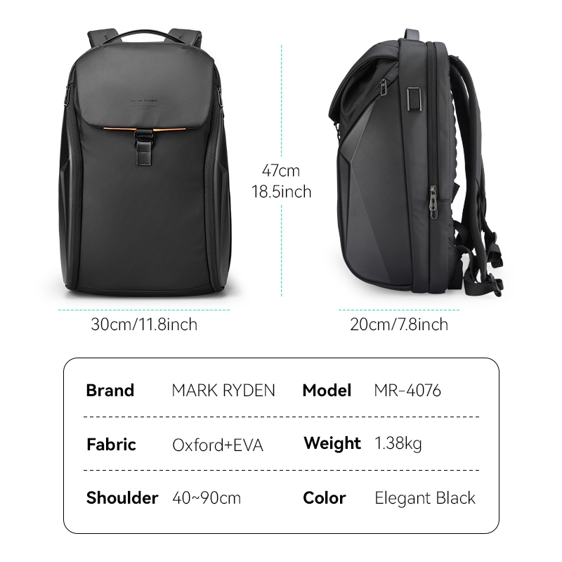Mark Ryden MR4076 thuộc Future Series – dòng balo mang tư duy thiết kế hiện đại, lấy hình khối hình học (Geometric Shapes) làm ngôn ngữ chủ đạo, tạo nên phong cách tương lai – tối giản – công nghệ nhưng vẫn giữ được sự lịch lãm cần thiết cho người đi làm.