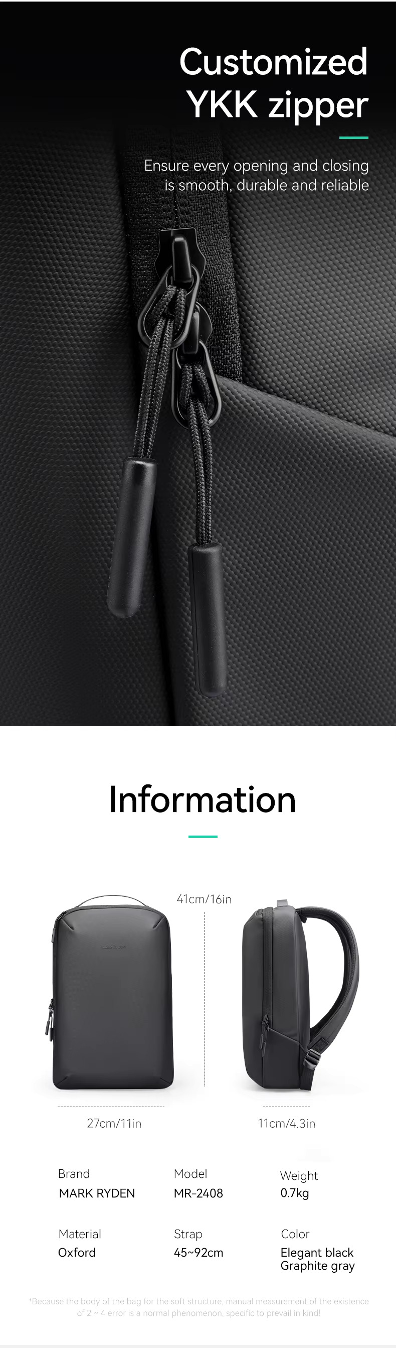 Khoá kéo đến từ YKK – thương hiệu khoá nổi tiếng Nhật Bản, cho khả năng hoạt động mượt mà, lâu dài, chống kẹt, chống gãy.