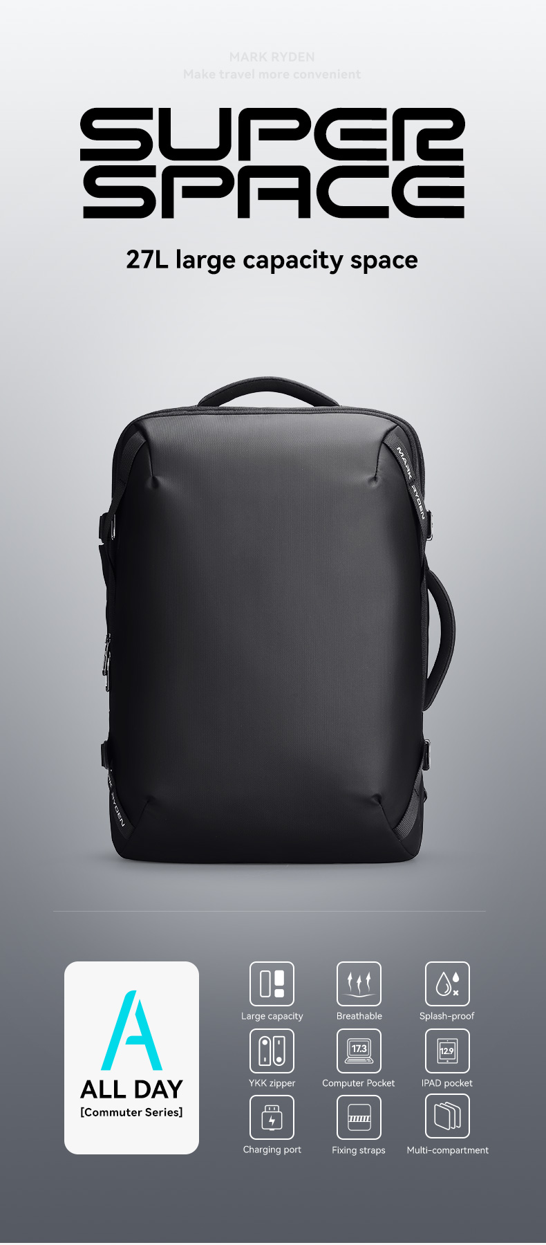 🎒 Balo Mark Ryden MR9993 – Dung Tích Lớn 27L, Chuẩn Du Lịch & Công Việc Chuyên Nghiệp