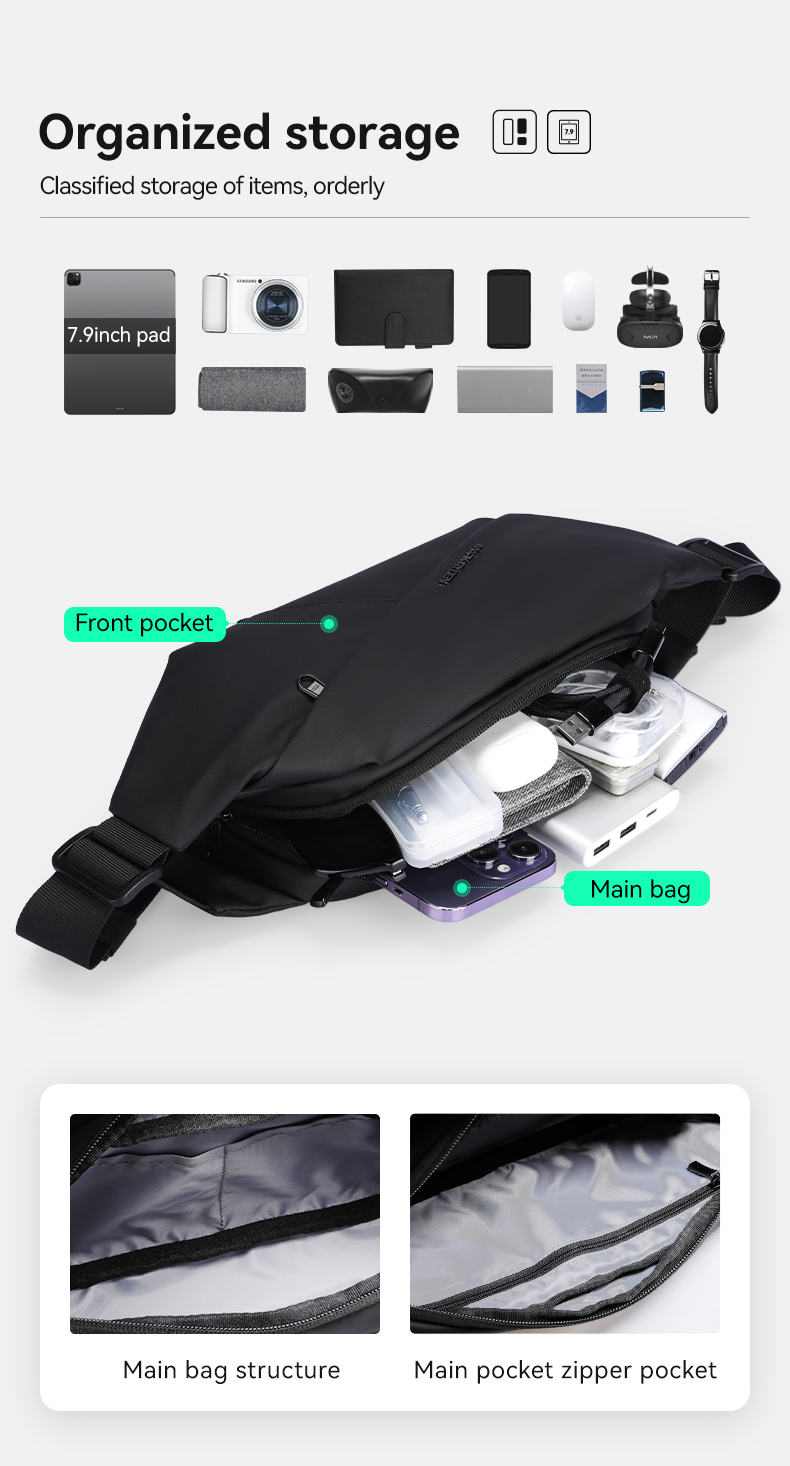 ✔️ Tính Năng : Chứa Đồ Cá Nhân: Điện thoại,túi ví,kính,Ipad 7.9 inch